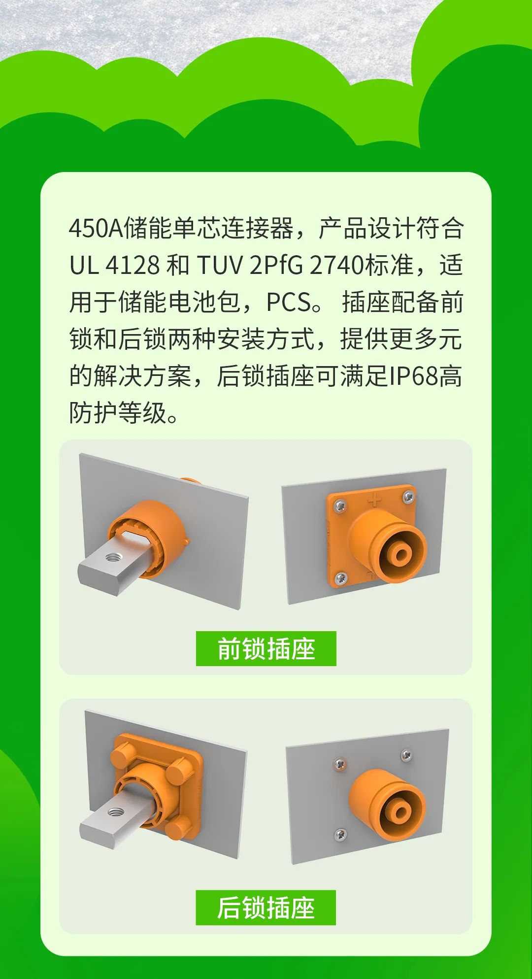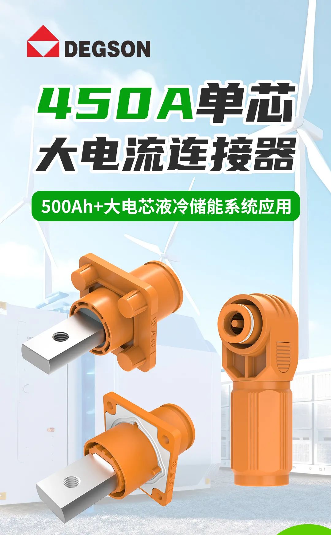新品推荐丨450A单芯大电流连接器-500Ah+大电芯液冷储能系统应用