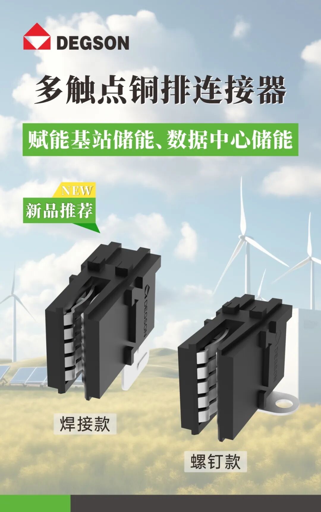 高可靠,高效率丨DEGSON 多触点铜排连接器——赋能基站储能,数据中心储能